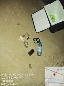 Dentro da residência, a equipe ainda encontrou uma balança de precisão em funcionamento, com odor e resquícios de substância aparentando ser crack — elementos que reforçam a suspeita de envolvimento do autor com o comércio ilícito de drogas.