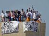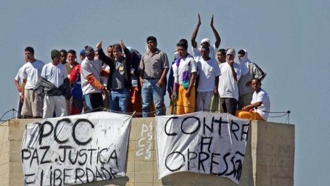 Presos fizeram uma rebelião na Penitenciária de Junqueirópolis, São Paulo, em 14 de maio de 2006. Detentos subiram no telhado e penduraram faixas com mensagens do PCC