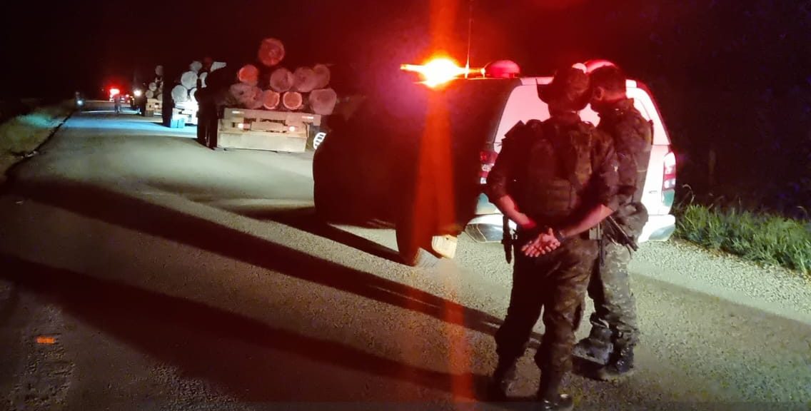 Durante a fiscalização, foram identificados veículos transportando madeira in natura sem comprovação de origem legal, configurando, em tese, crime ambiental. Parte dos envolvidos evadiu-se pela área de mata ao perceber a presença policial.