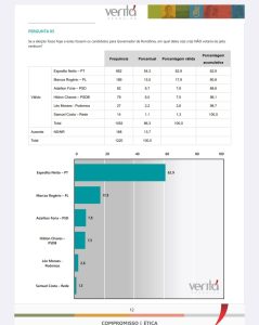 De acordo com os dados, Expedito Netto aparece com 62,9% de rejeição na porcentagem válida, quando são considerados apenas os entrevistados que opinaram, além de 54,3% no percentual geral. Em números absolutos, 662 entrevistados afirmaram que não votariam nele “de jeito nenhum”.