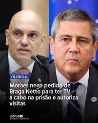O ministro do Supremo Tribunal Federal (STF) Alexandre de Moraes negou o pedido da defesa do general Walter Braga Netto para ter acesso a TV a cabo na cela onde cumpre pena no Comando da 1ª Divisão de Exército, em Brasília. A decisão é de terça-feira (10).